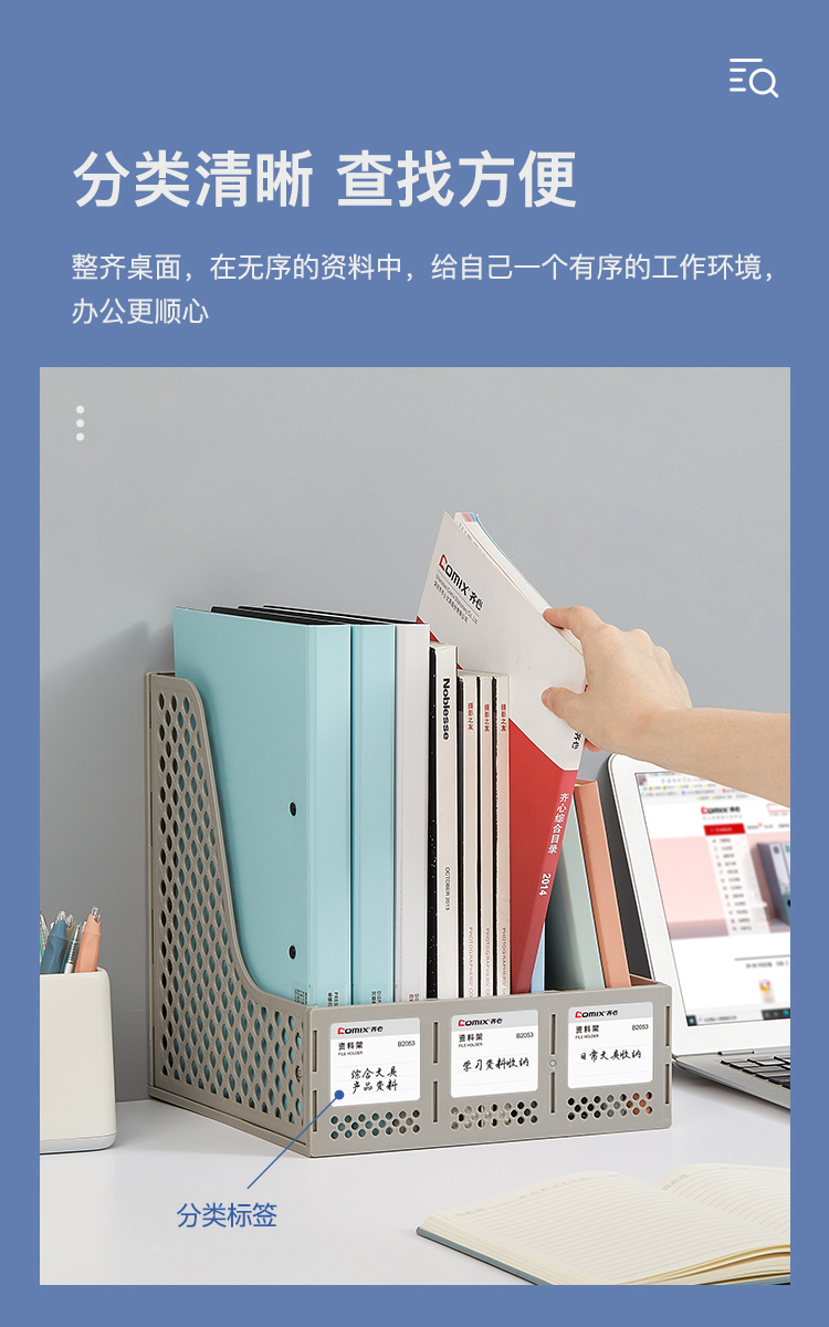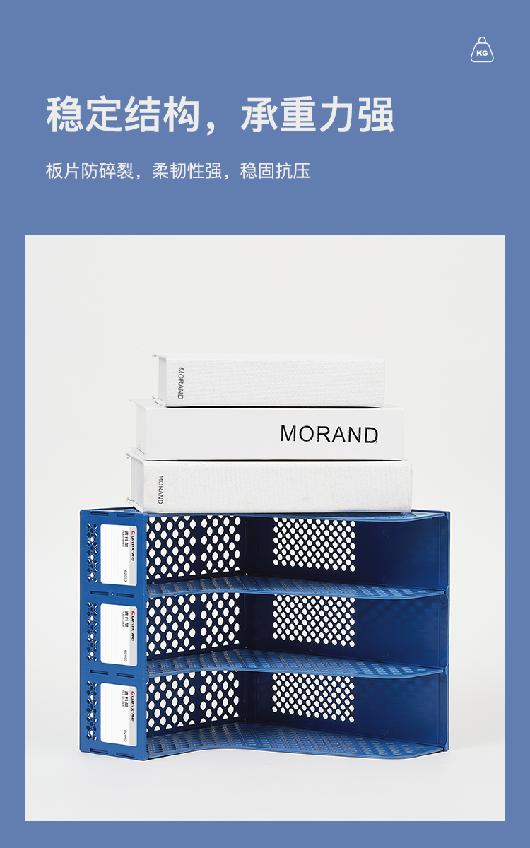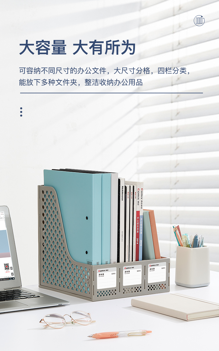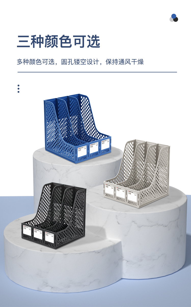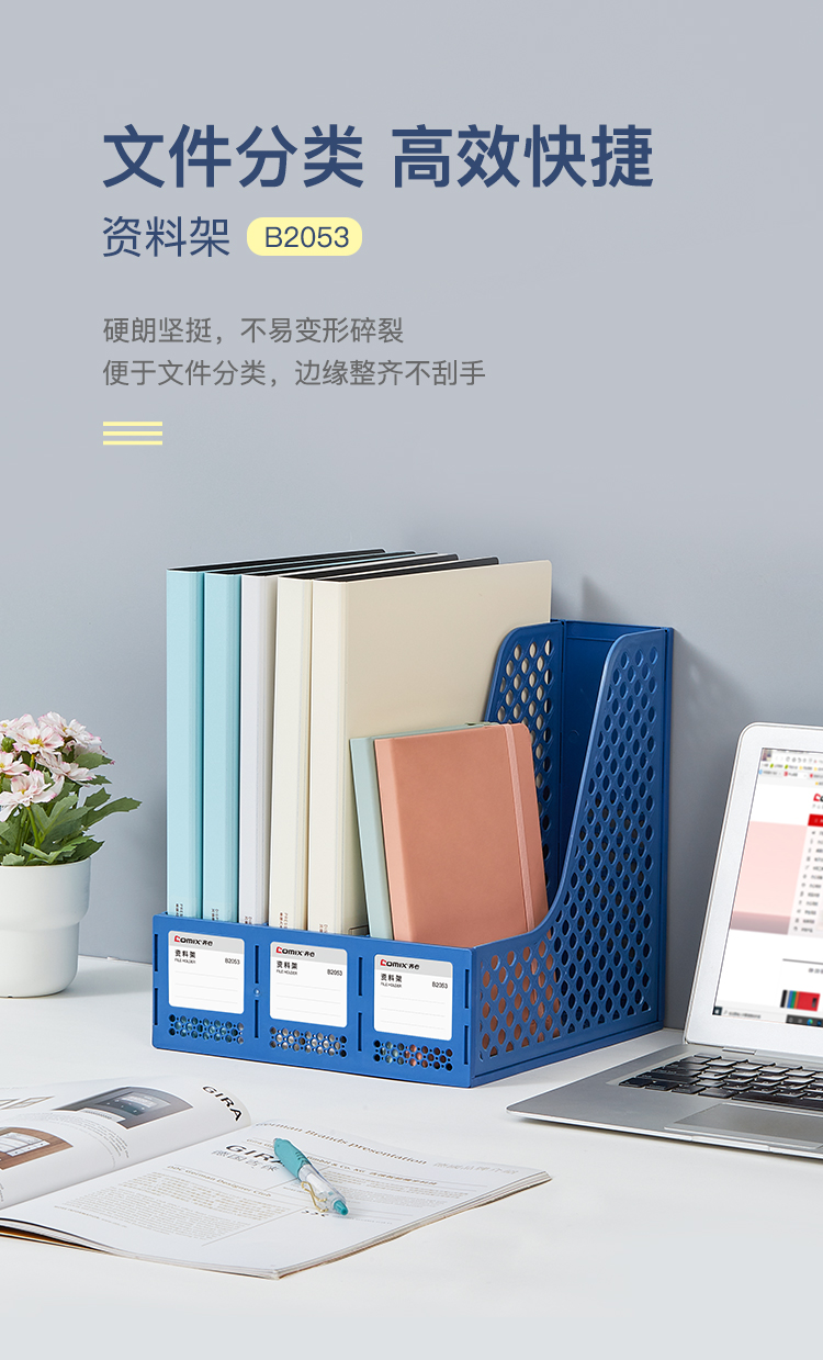 齐心(Comix) B2053 三格资料架 桌面文件框 256*245*272 蓝色