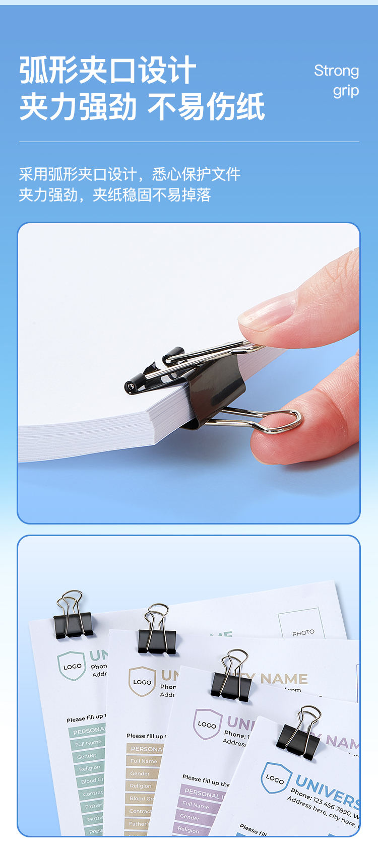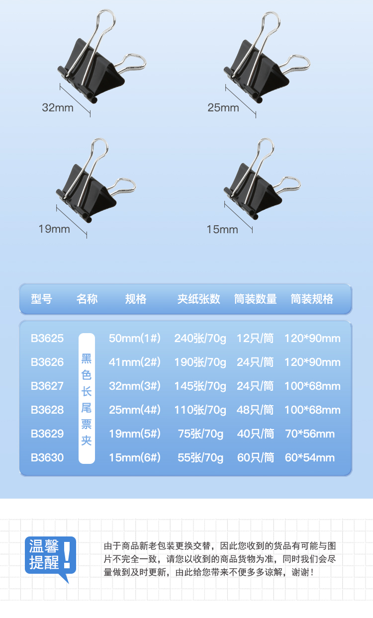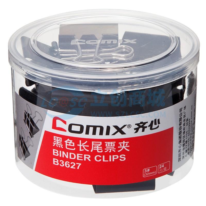 [1罐24个]齐心(COMIX) B3627 黑色强力长尾票夹 金属燕尾夹 票据夹子(3# 32mm)