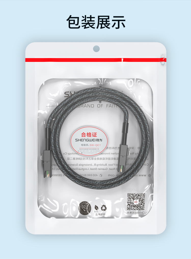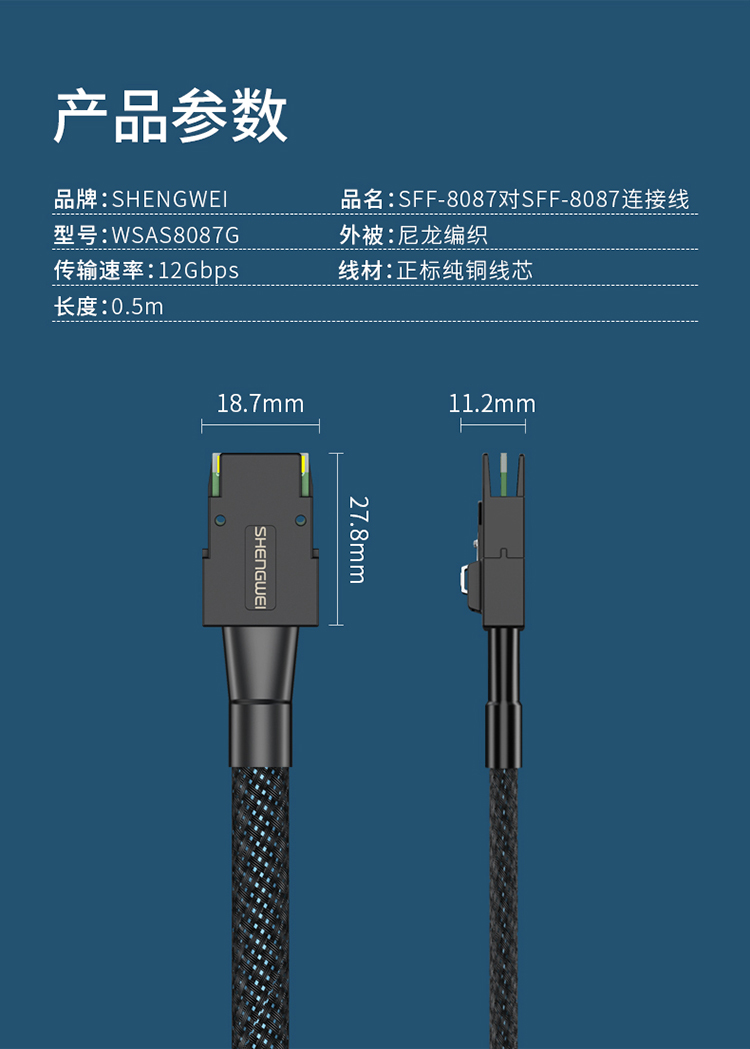 shengwei(胜为)SFF-8087对SFF-8087 SAS连接线36P对36P 支持12G 黑色0.5米 WSAS8087G
