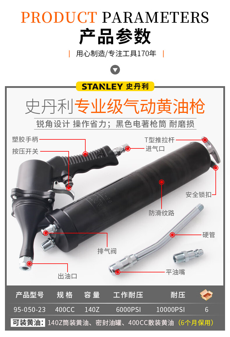 STANLEY(史丹利),气动黄油枪400CC,95-050-23