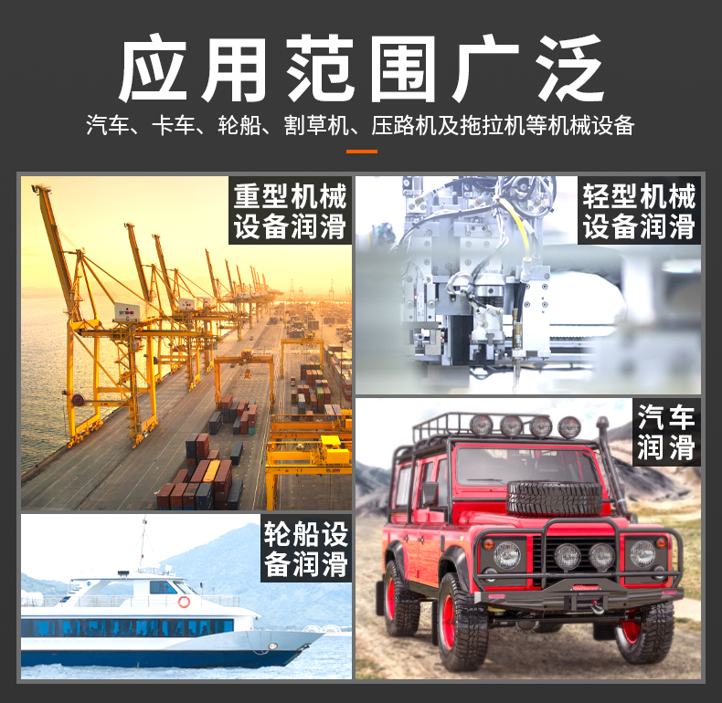 该气动黄油枪广泛应用于汽车、卡车、轮船、割草机、压路机及拖拉机等机械设备的润滑作业。在重型机械设备润滑中,如港口起重机、矿山机械,其强大的输出压力和耐用性确保了高效润滑。在轻型机械设备润滑中,如工厂自动化设备、农业机械,其便捷的操作和密封设计提高了维护效率。在汽车润滑中,无论是乘用车还是商用车,都能快速完成润滑任务,延长车辆使用寿命。此外,轮船设备润滑也得益于其防锈蚀和耐高压特性,确保海上作业的安全性和可靠性。