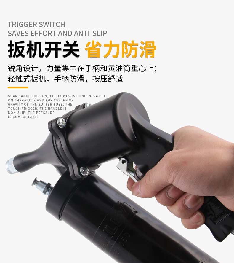 3 操作便捷:扳机开关设计省力防滑,锐角设计使力量集中,轻触式扳机操作舒适,手柄防滑,按压更轻松。