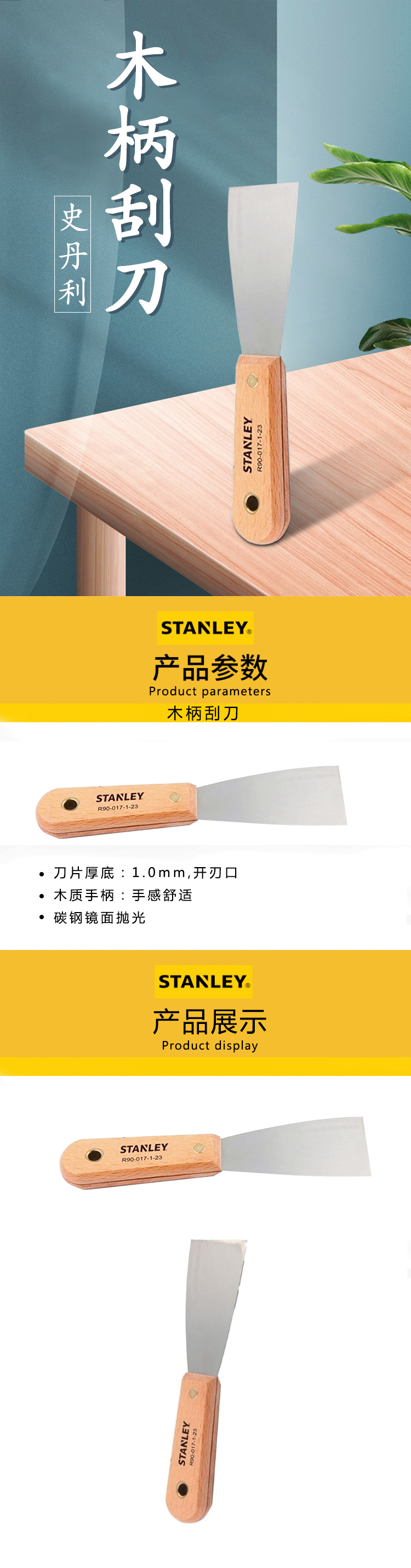 STANLEY(史丹利)木柄刮刀广泛应用于各种工业和家庭维修场景中: