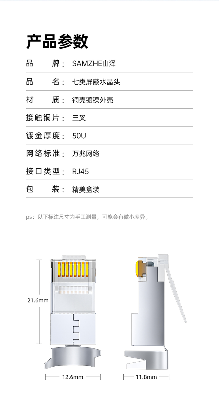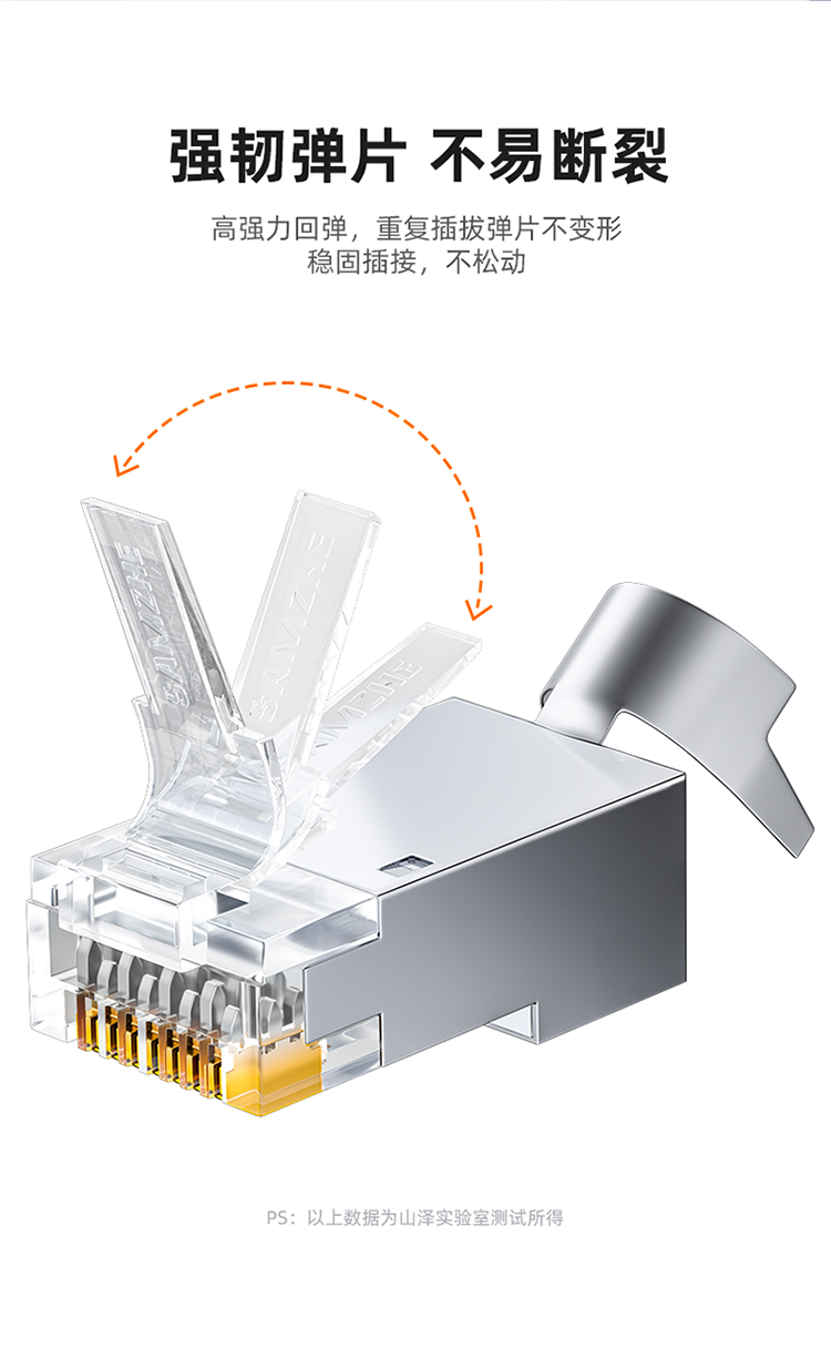 [一整盒100个]SAMZHE(山泽)七类水晶头 RJ45屏蔽网络水晶接头 工程级50U镀金万兆网线连接器 7类网线接头 WJ7100U