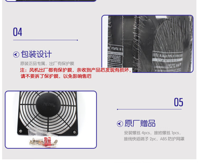 安装时请注意风扇的旋转方向,确保气流方向与设备散热需求一致。