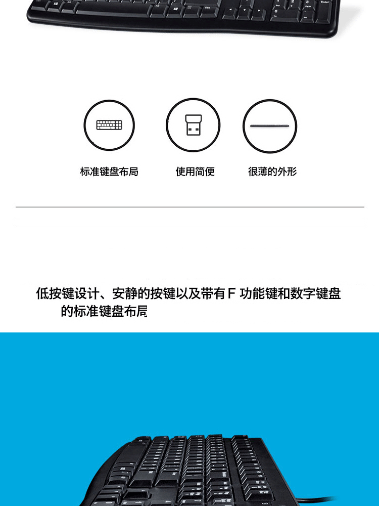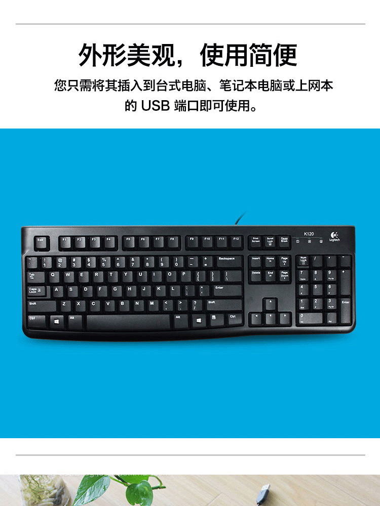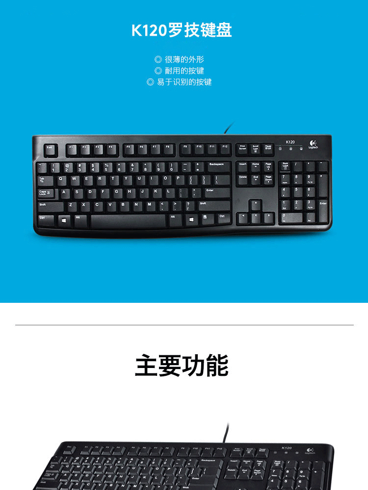 Logitech(罗技) K120有线键盘 USB口电脑笔记本商务办公键盘 全尺寸键盘920-002583 黑色