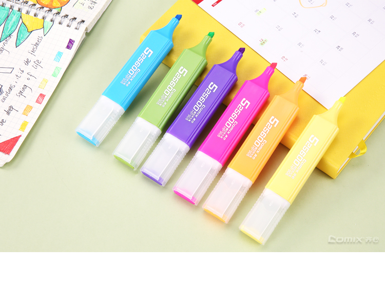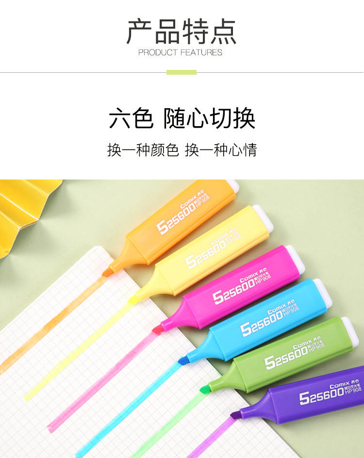 [1盒10支] 齐心(COMIX) HP908 持久醒目荧光笔 重点标记笔 1-5mm 粉色