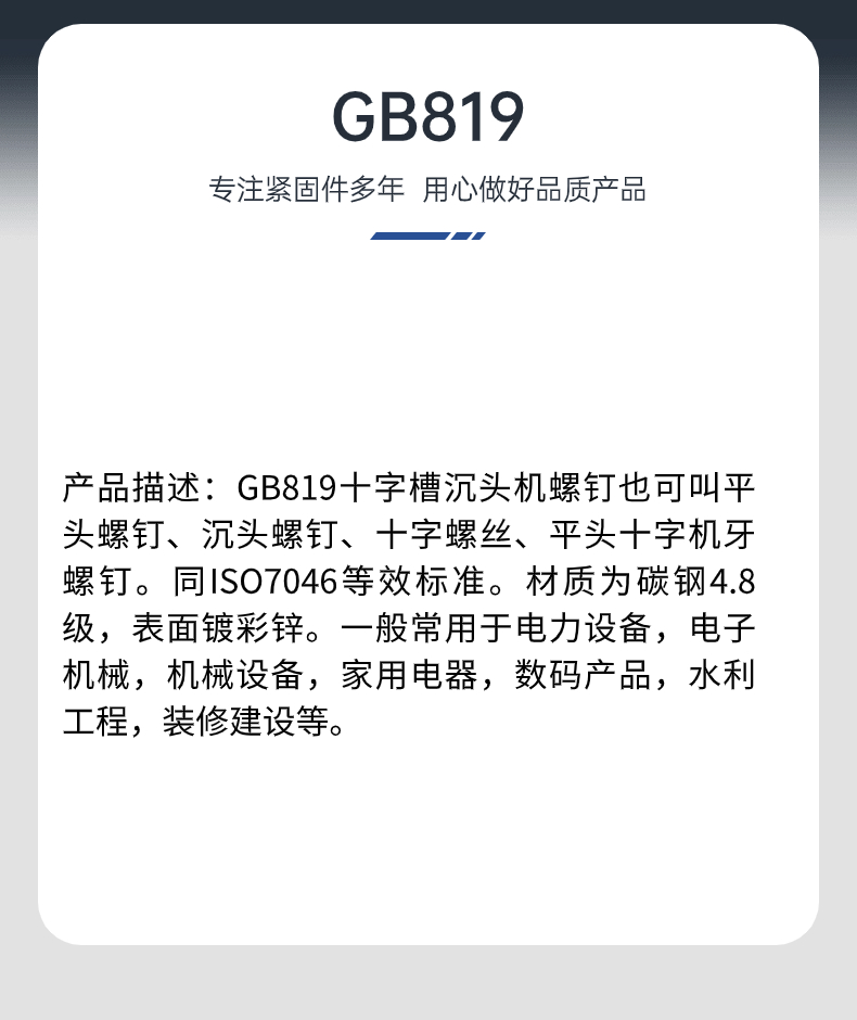 十字槽沉头螺钉GB819 不锈钢304 M5x16