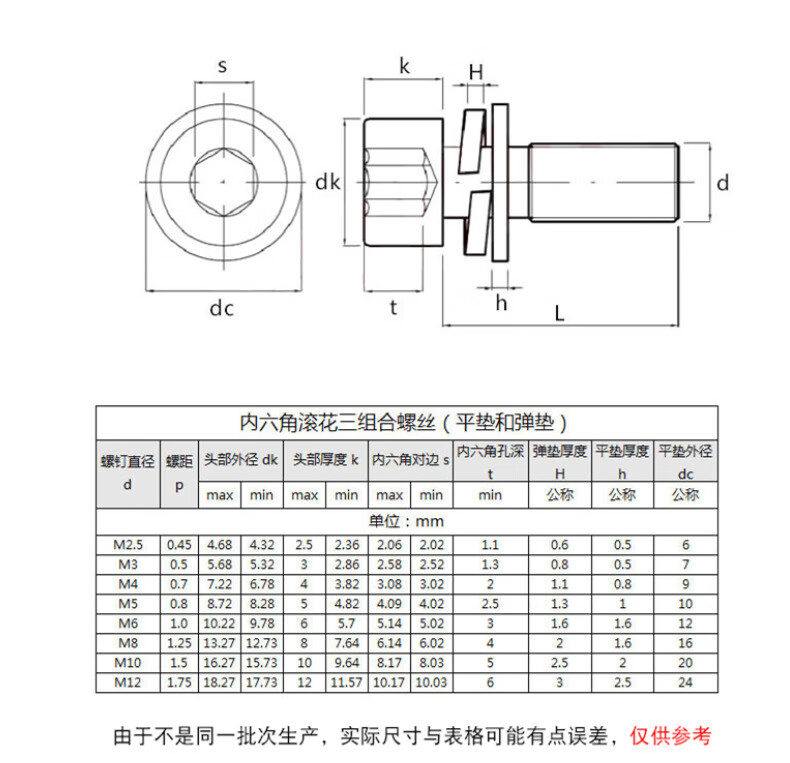 尺寸参数严格遵循国际标准,螺纹公称直径M6,螺距1.0mm,螺杆长度12mm,头部外径约9.78mm,头部厚度6mm,内六角对边尺寸5.02mm,确保与标准工具兼容