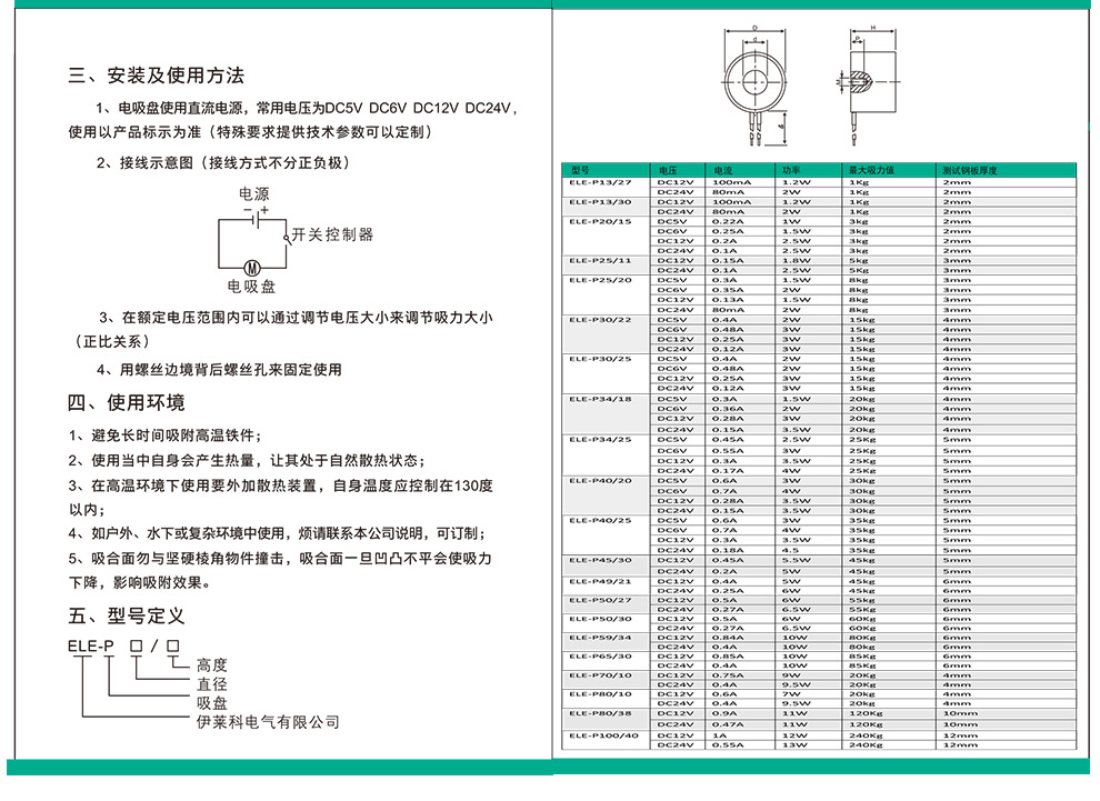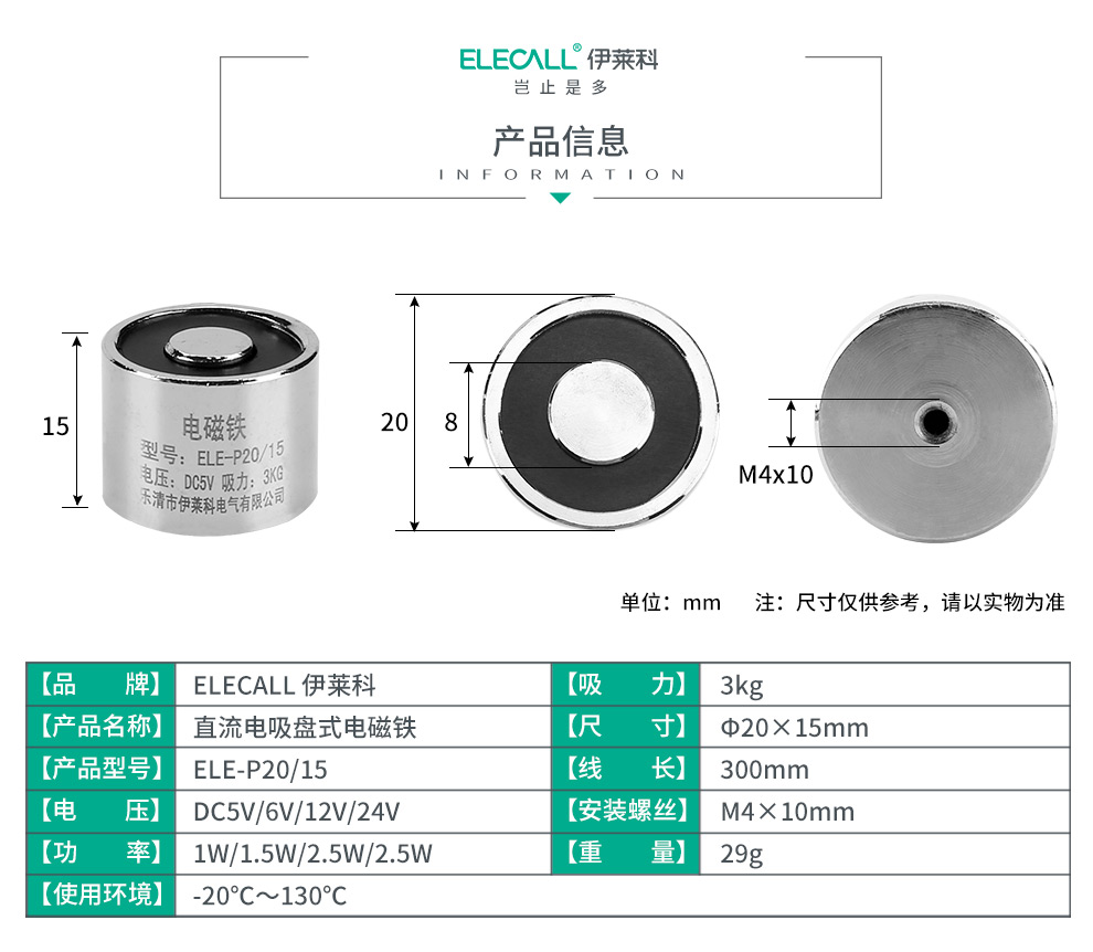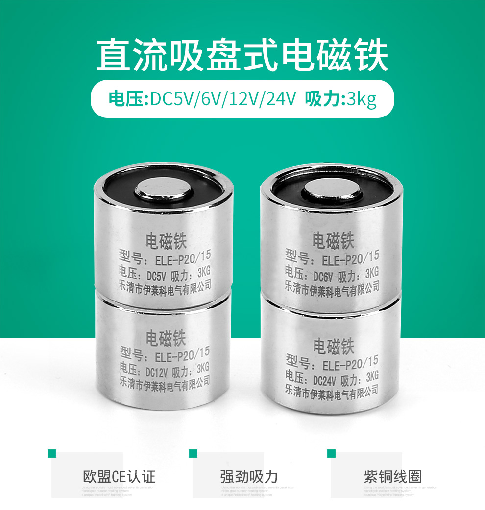 伊莱科,吸盘式电磁铁,P20/15,DC5V,吸力3Kg