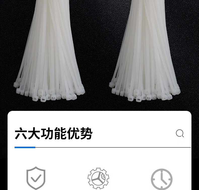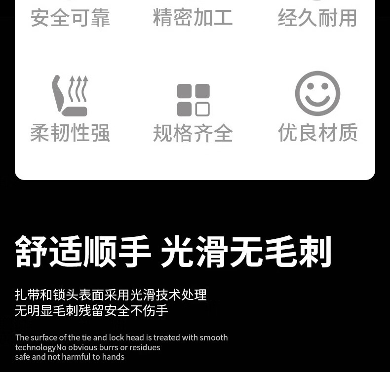 2 设计独特:加厚卡扣设计,齿齿相连,确保扎带不易断裂且止退功能出色,安装后不易脱落。