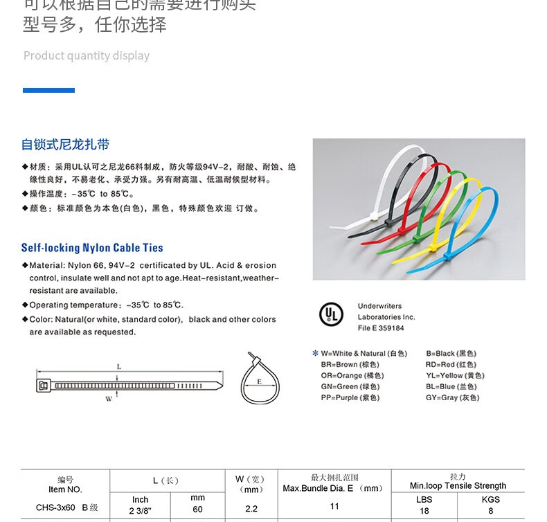 CHS(长虹) ZD-SLT-3X120自锁式高韧性尼龙扎带具有以下特点:
