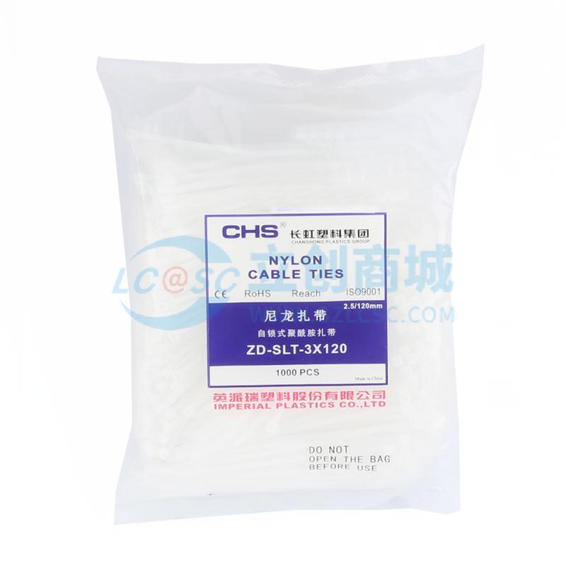[一整包1000条]CHS(长虹)自锁式尼龙扎带 国标 A级 白色 CHS-3*120