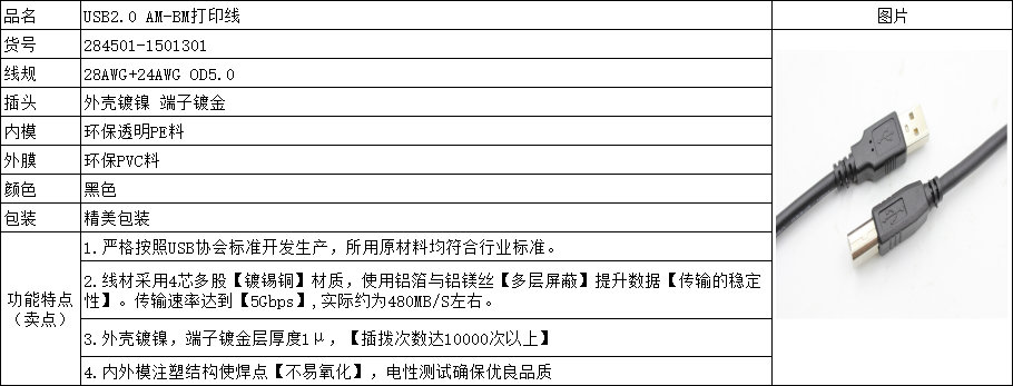 该USB 2.0 AM至BM打印线广泛应用于各种需要高速数据传输的场景,如连接打印机、扫描仪等外设与电脑主机。在办公环境中,它能够高效稳定地传输打印任务和扫描数据,提升工作效率。在工业控制领域,该线缆适用于连接工业级打印机和数据采集设备,确保数据的准确传输。此外,它还适用于家庭用户连接各类USB设备,满足日常数据传输需求。在不同工作条件下,该线缆表现出色,无论是高温还是低温环境,都能保持稳定的性能。