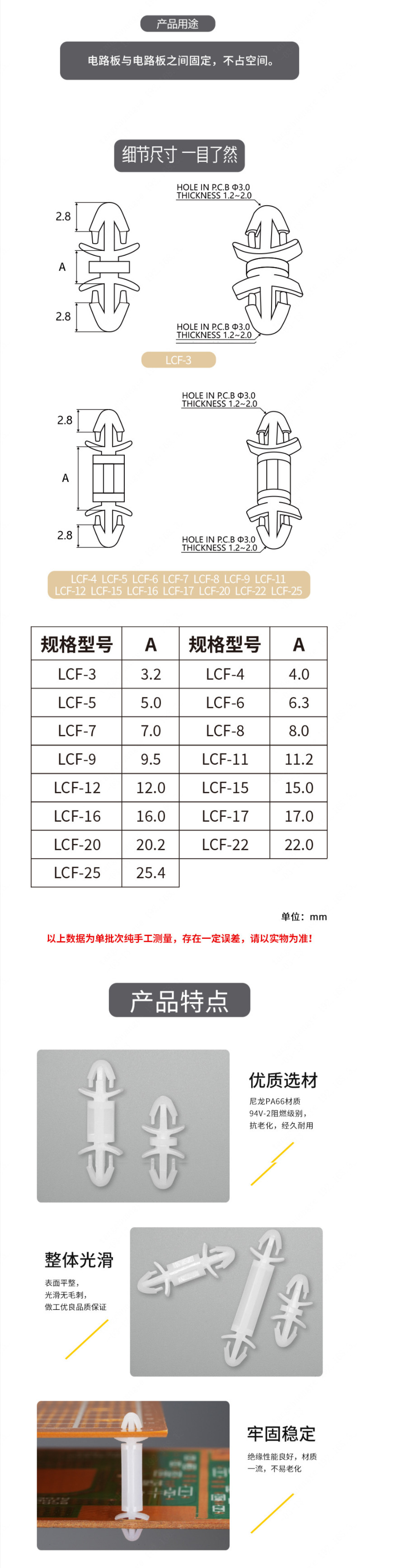 结构设计牢固稳定,绝缘性能优良,可有效固定电路板与电路板之间的位置