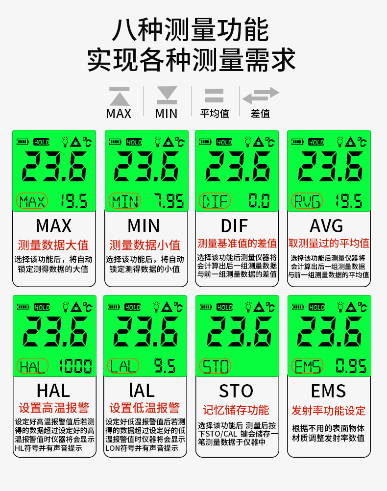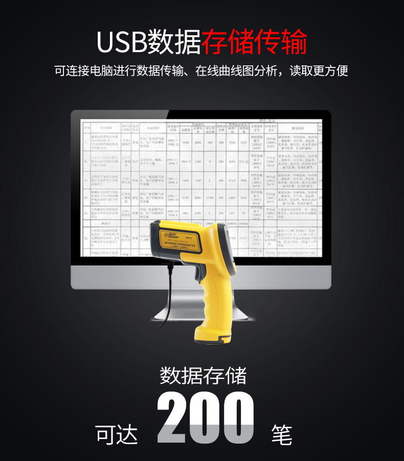 希玛 工业红外线测温仪-18~1150℃非接触式电子温度计高温远距激光探热枪测温器-18℃~1150℃