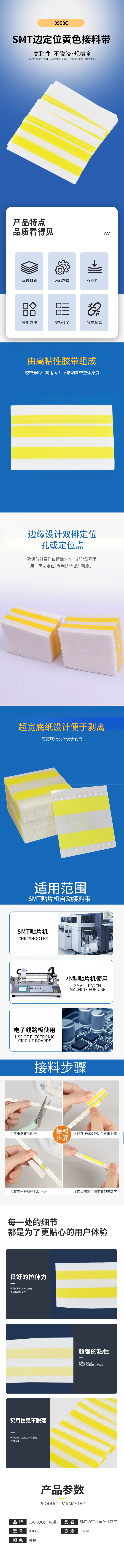 [一整盒500个]一电通SMT边定位黄色接料带8MM