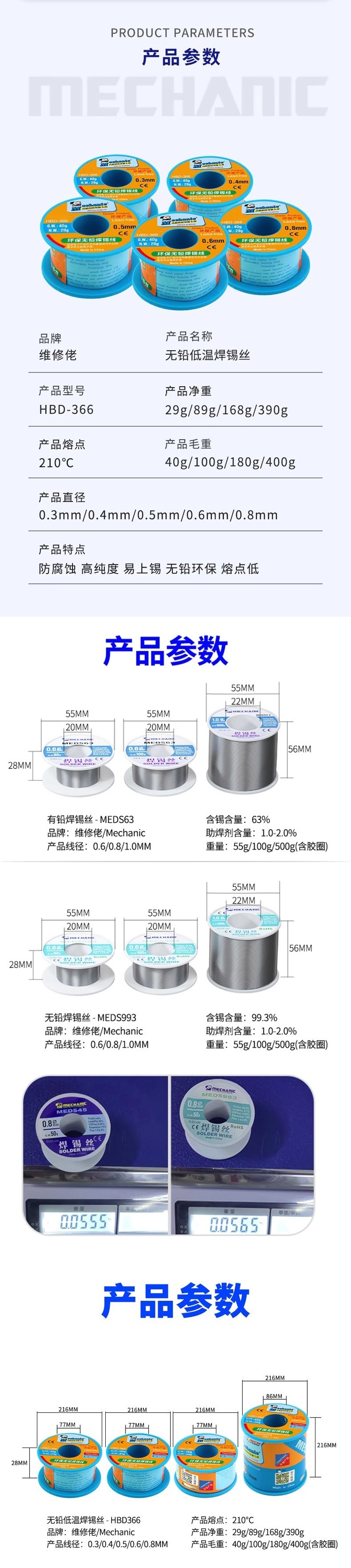 均匀线径:线径0.5mm,粗细均匀,适合精细电子元件的焊接操作