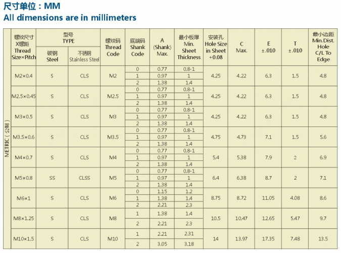 固合霖 压铆螺母 M2.5X0.45 碳钢 蓝白锌 袋装