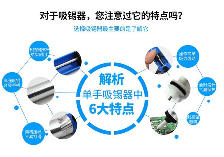 6 操作简单,吸力强,适用于各种精密电子元件的拆卸和维修,提高工作效率。