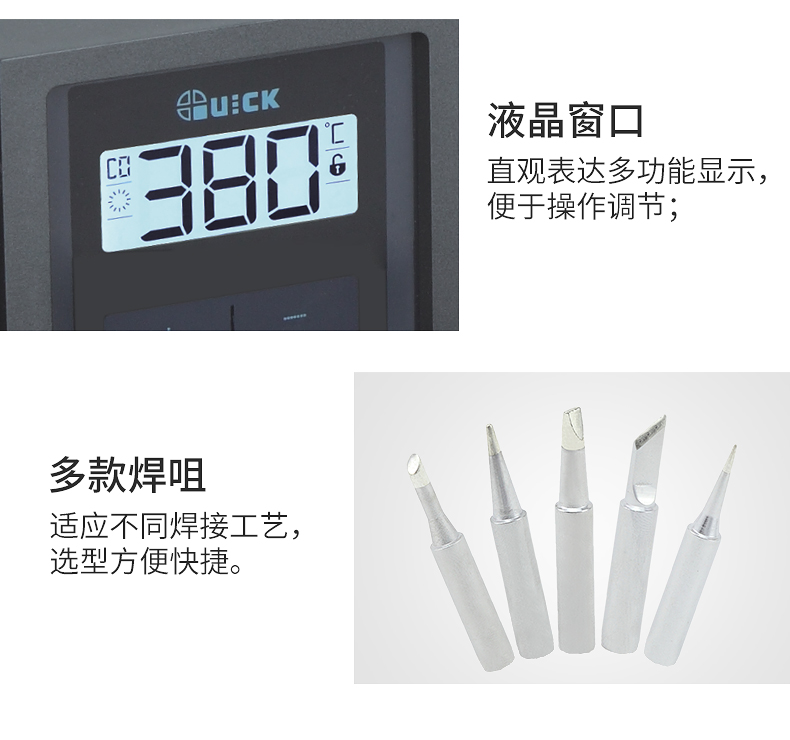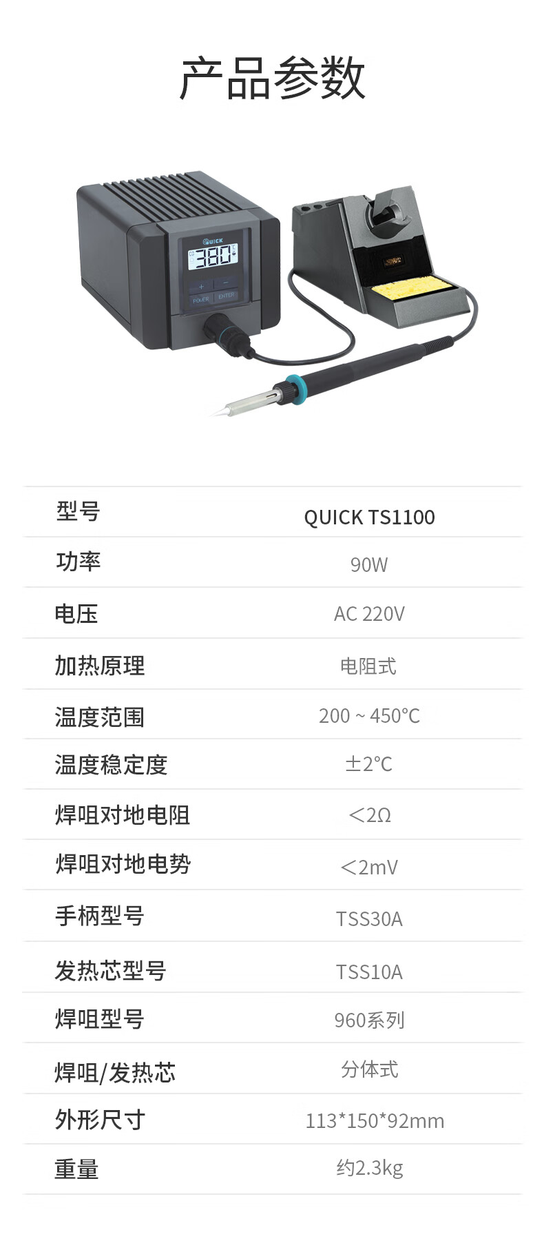 QUICK(快克),智能无铅电焊台90W恒温防静电可调温电烙铁焊锡焊接维修焊台,QUICK TS1100