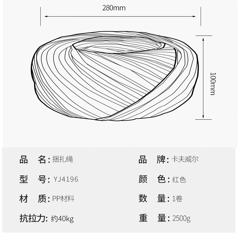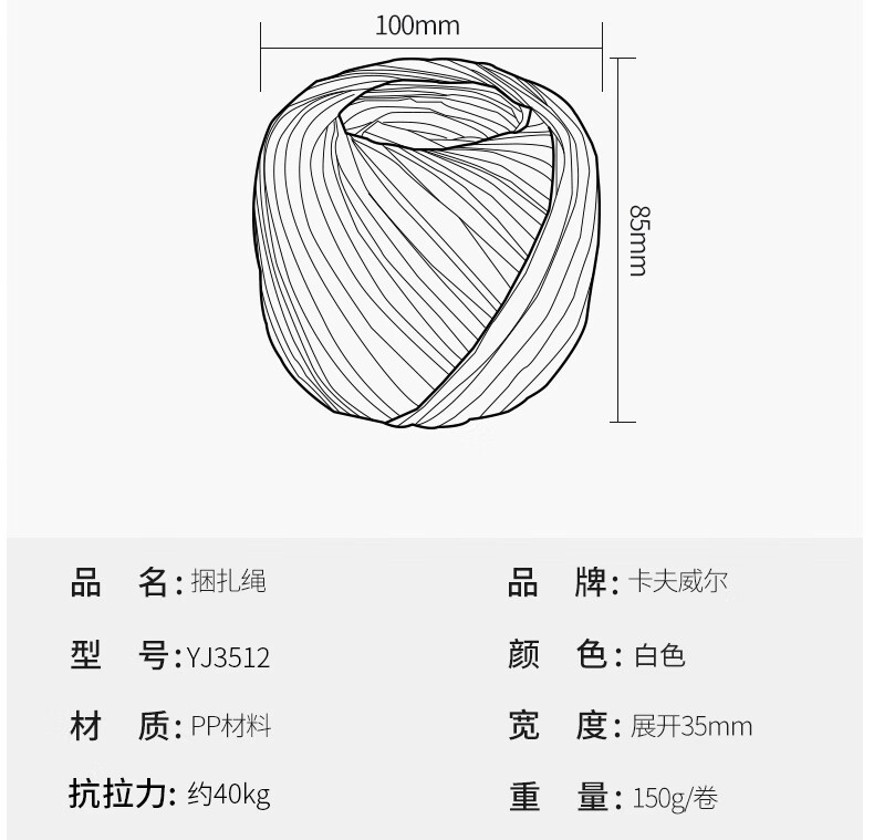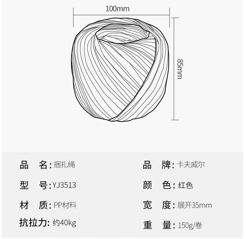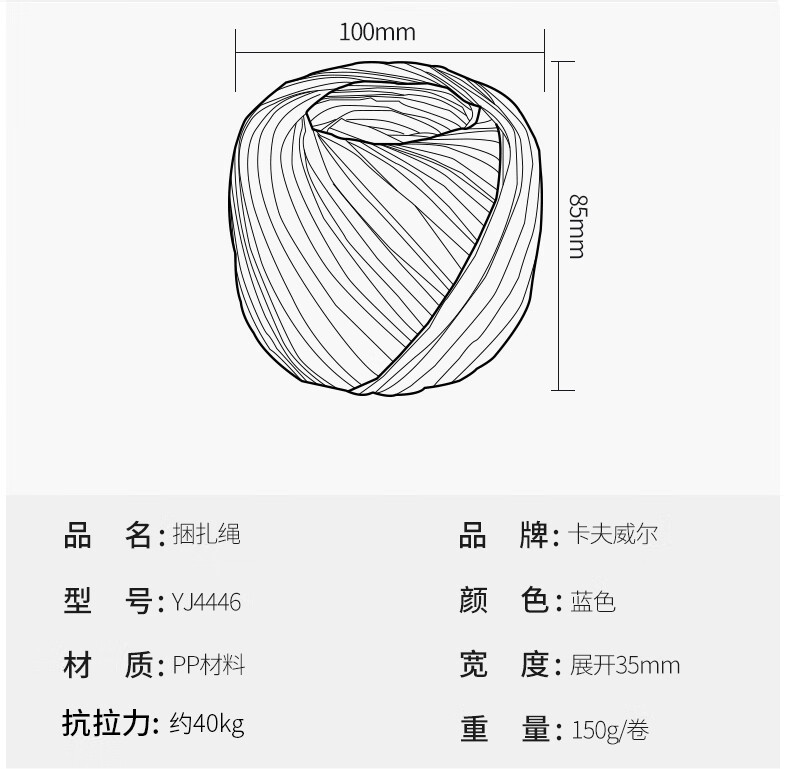 卡夫威尔 尼龙绳子捆绑用打包绳子 塑料撕裂绳捆扎绳撕裂带 包装绳草球绳封包扎带 蓝色 150g