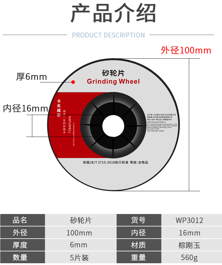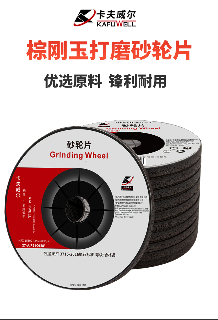 {一整袋5片}卡夫威尔 砂轮片 角磨机配件切割打磨片 100*6*16mm