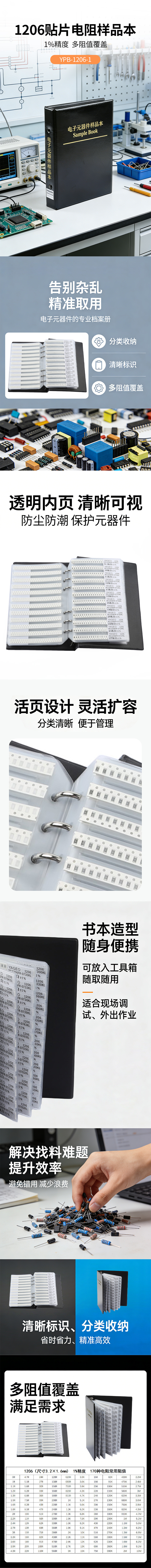 国产 1206贴片电阻样品本 元器件样品本样品册样品夹 1%精度 YPB-1206-1