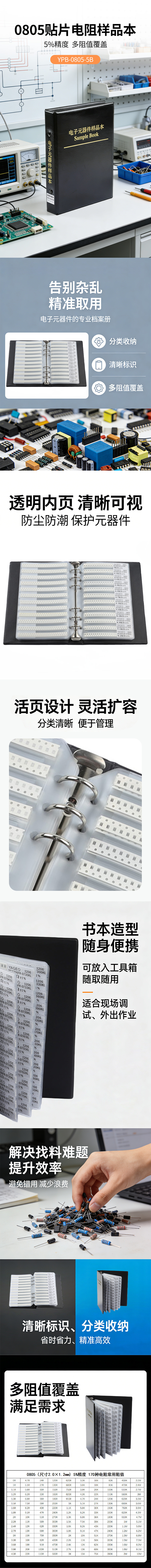国产 0805贴片电阻样品本 元器件样品本样品册样品夹 5%精度 YPB-0805-5B