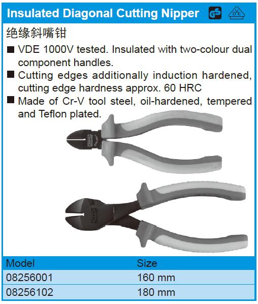 KENTA/克恩达 KT8-256-1 绝缘斜嘴钳具有以下特点: