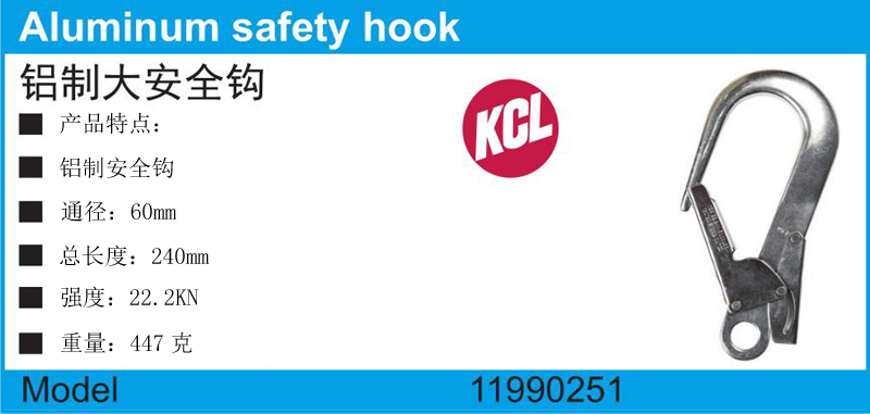 KENTA/克恩达 KT11-990-251 铝制大安全钩具有以下特点: