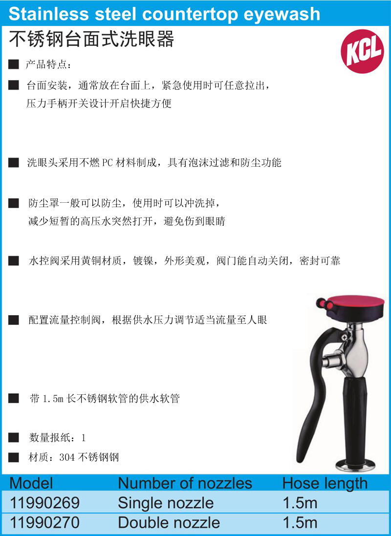 KENTA/克恩达 不锈钢台面式洗眼器 双喷嘴 软管长度1.5m KT11-990-270