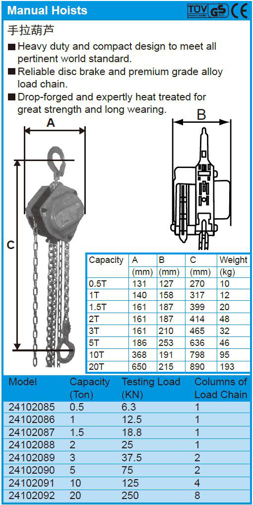 2 配备可靠的碟式制动器和优质合金钢负载链,提供卓越的承载能力和耐用性。