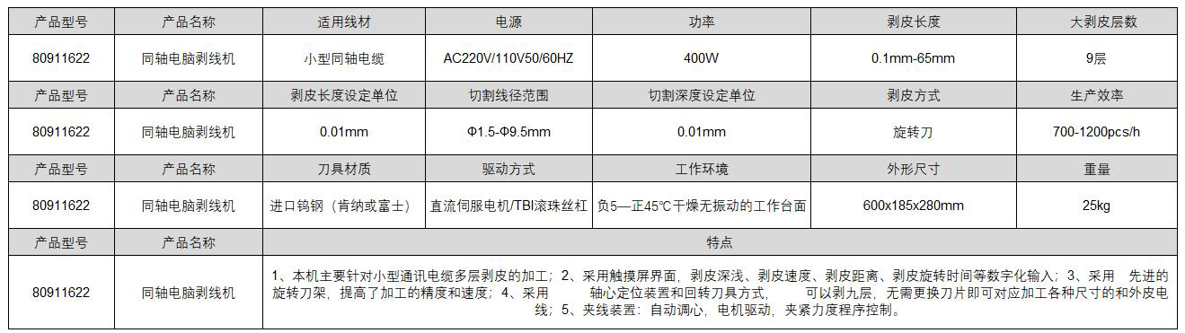 本机主要针对小型通讯电缆多层剥皮的加工,适用于小型同轴电缆的高效处理。