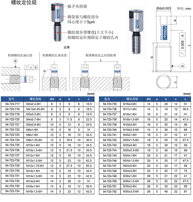 FOWLER/福勒 螺纹定位规 M16*1.5-6H 54-723-734具有以下特点: