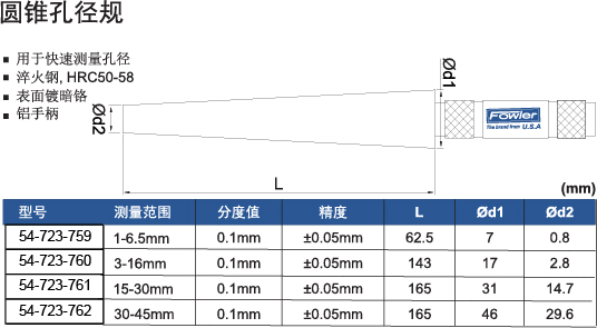 FOWLER/福勒 圆锥孔径规 15-30mm 54-723-761