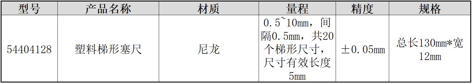量程范围为0.5~10mm,间隔0.5mm,共20个梯形尺寸,能够满足多种精密测量需求。