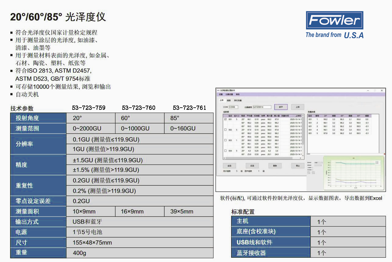 符合多项标准:符合ISO 2813、ASTM D2457、ASTM D523、GB/T 9754等国际及国内标准,测量结果具有权威性