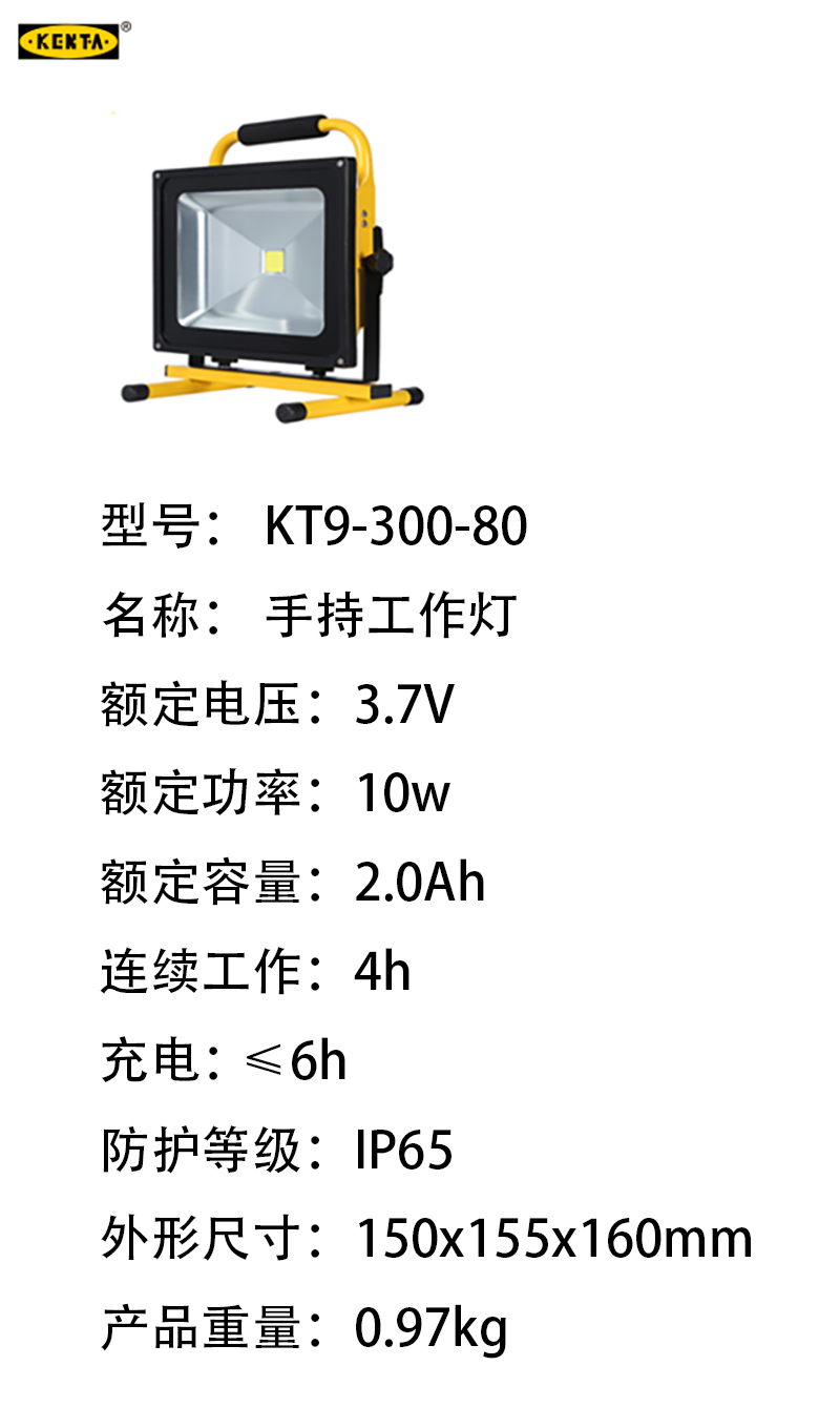 KENTA/克恩达 手持工作灯 LED10W 照明4h 电池容量3.7V 2000mAh KT9-300-80