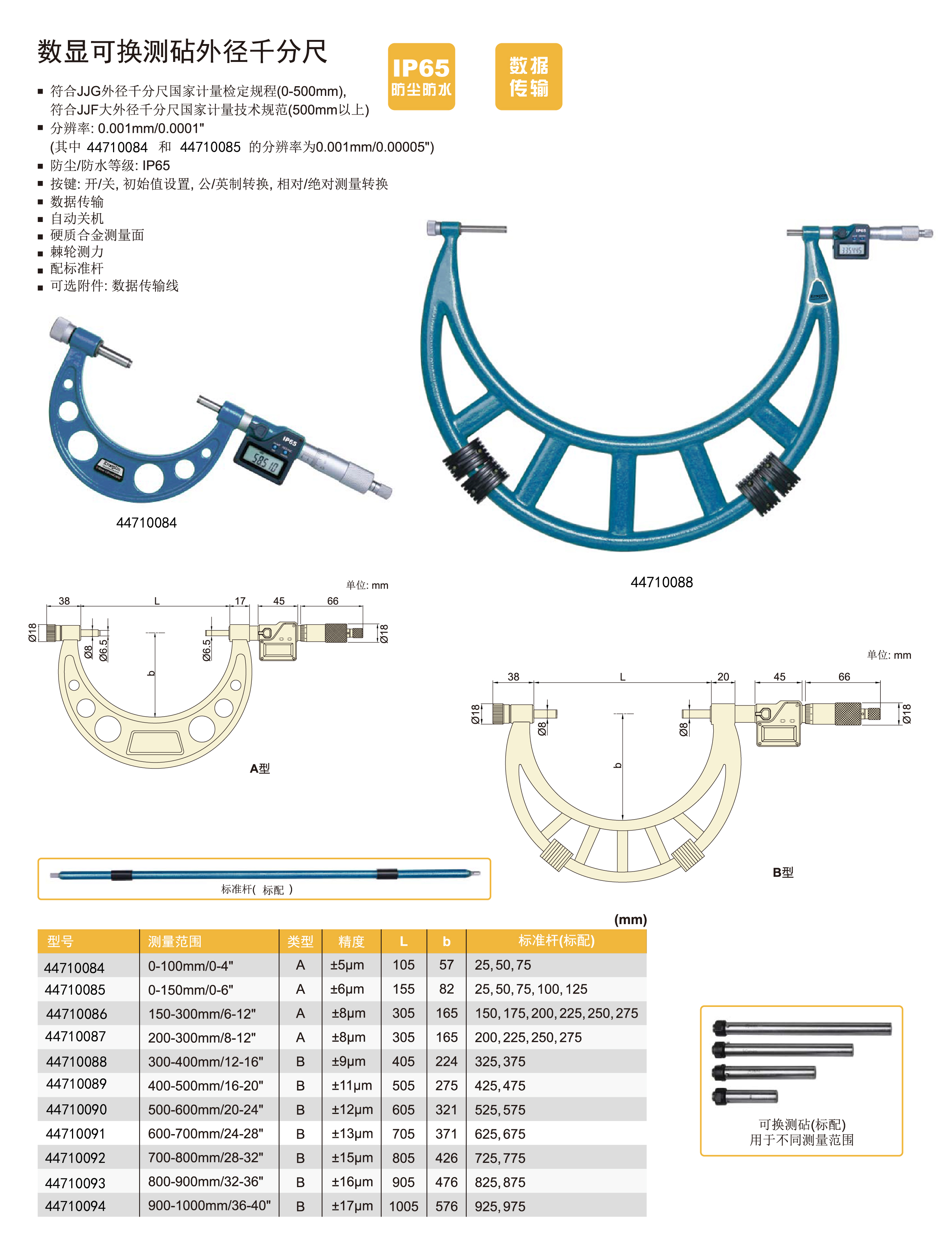 为了确保数显可换测砧外径千分尺的安全使用和长久寿命,请注意以下事项: