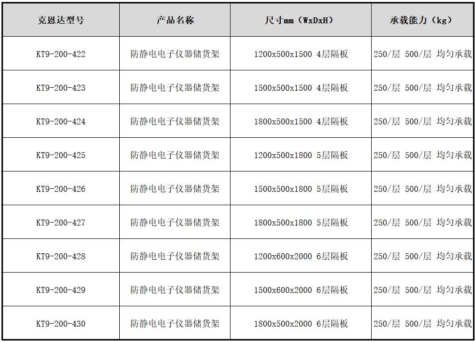 KENTA/克恩达 防静电电子仪器储存货架 1200*500*1800mm KT9-200-425