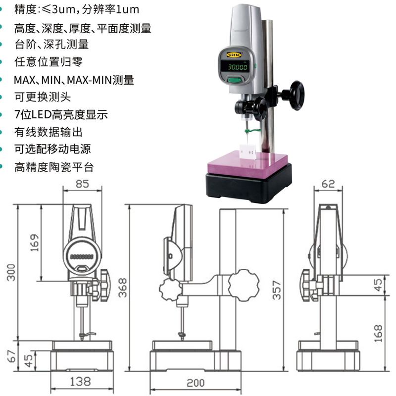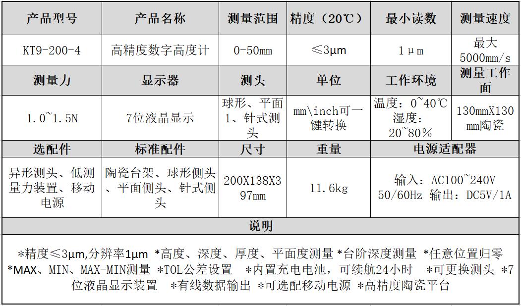 KENTA(克恩达) KT9-200-4 数字式机械测头单柱测高仪具有以下特点: