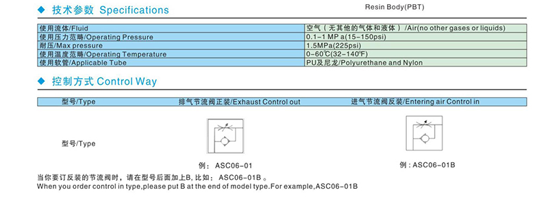4 节流阀设计允许在充分密闭位有一定程度的空气泄漏,因此不要将其用于不允许有空气泄漏的场合。
