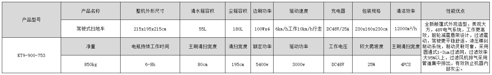 驱动速度为6km/h工作和10km/h行走,电瓶持续工作时间为6-8小时,适应各种工作环境。