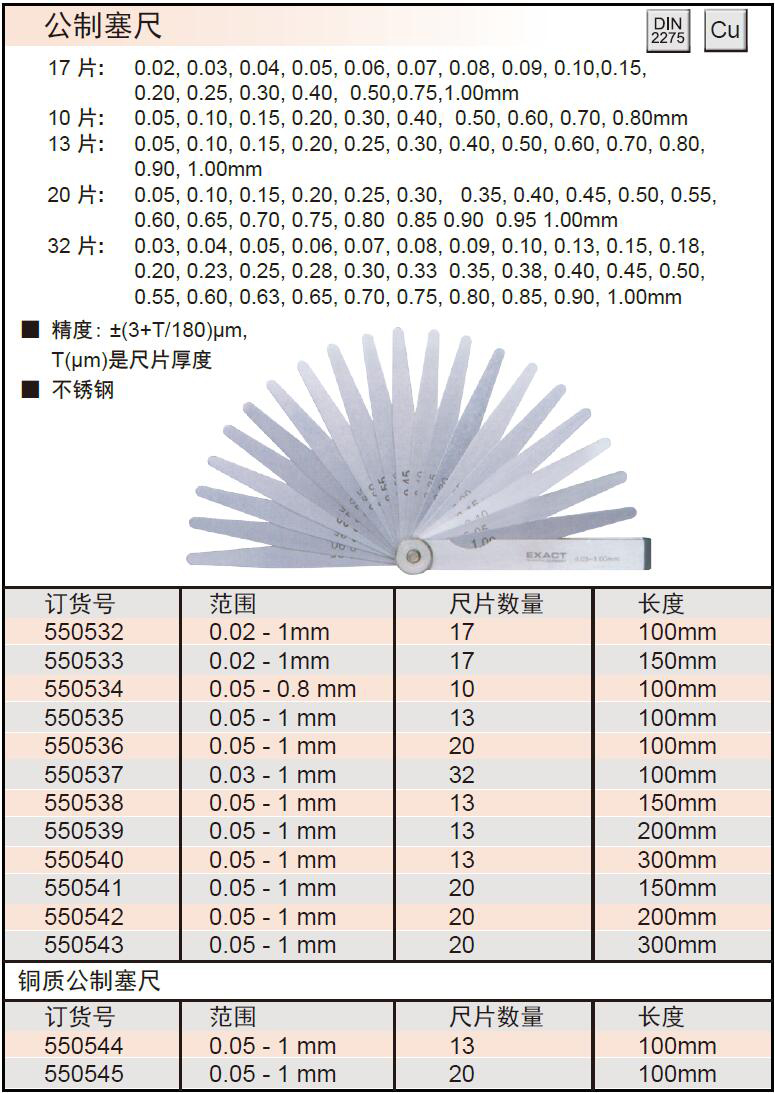 使用EXACT/赛特 铜制公制塞尺时,请注意以下事项: