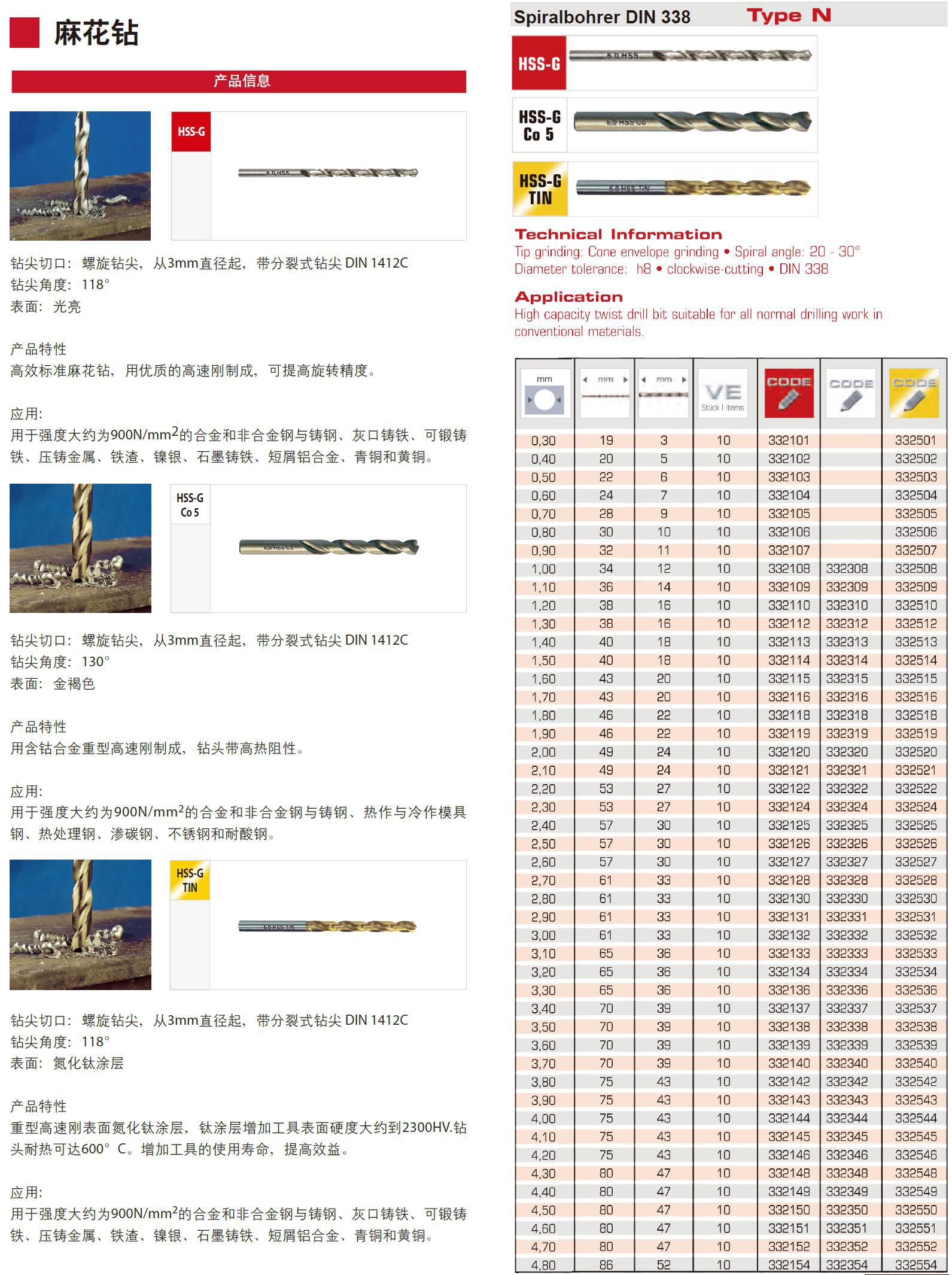 钻尖切口设计为螺旋钻尖,从3mm直径起,带分裂式钻尖DIN1412C,有效提升排屑能力和钻孔精度。