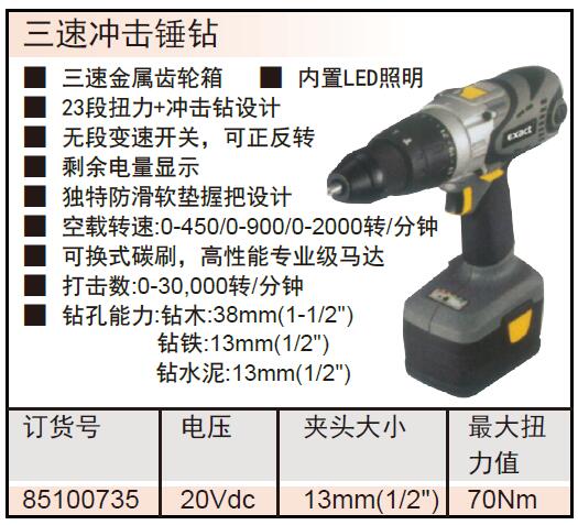 EXACT/赛特 三速冲击锤钻 70Nm 85100735