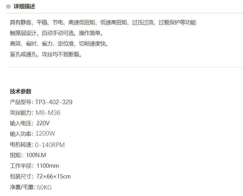 该设备在不同工作条件下表现稳定,无论是盲孔还是通孔,均能保证攻丝质量,不致断裂,是现代工业生产的理想选择。