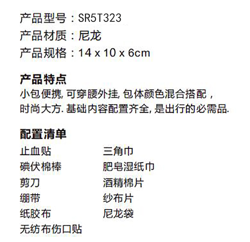 使用stakpure/斯塔克普尔 SR5T323 尼龙急救包时,请注意以下事项:
