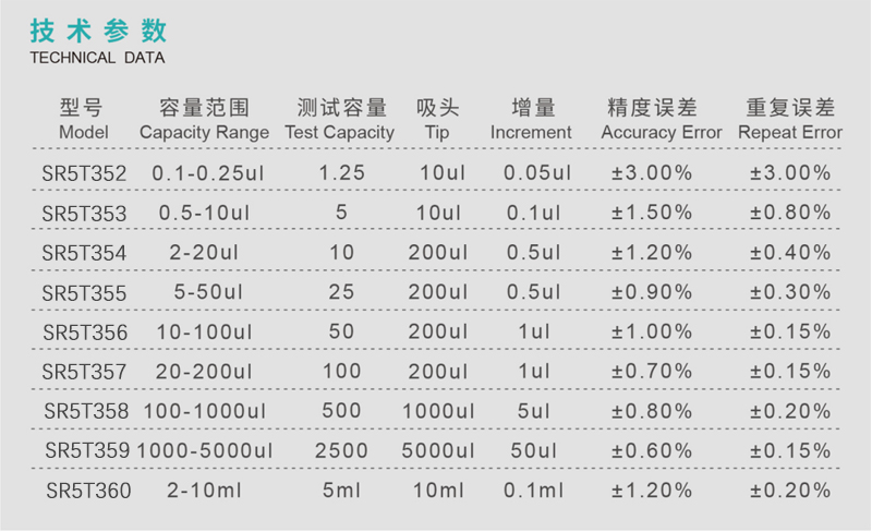 容量范围为2-20ul,适用于小体积液体的精确转移。
